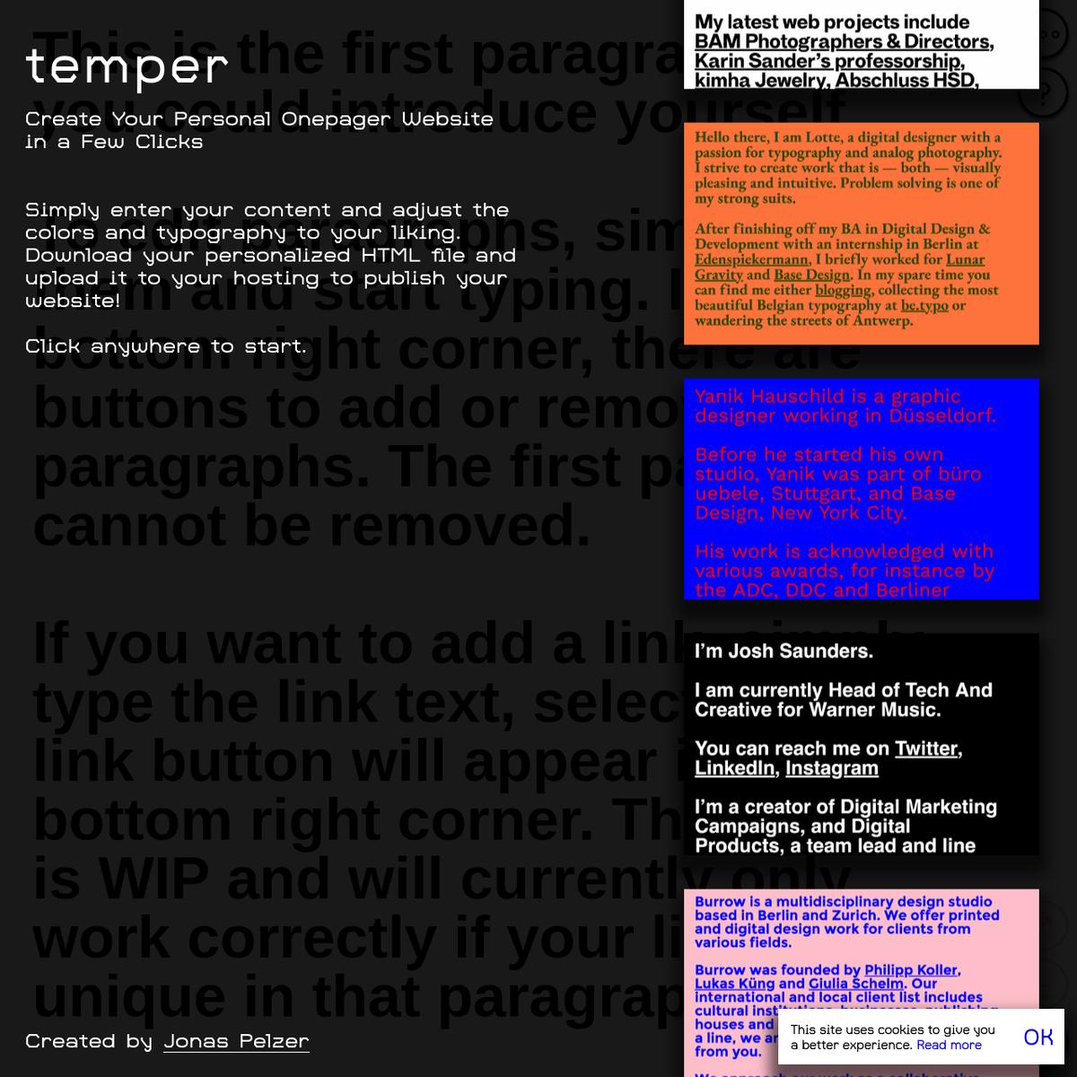 Jonas Pelzer is a designer and developer based in Berlin. He’s the creator of the website builder temper and runs the digital type foundry Jonas Type. With over 15 years of professional experience, he has collaborated with numerous notable clients, focusing on creating digital experiences that balance aesthetics and functionality.
